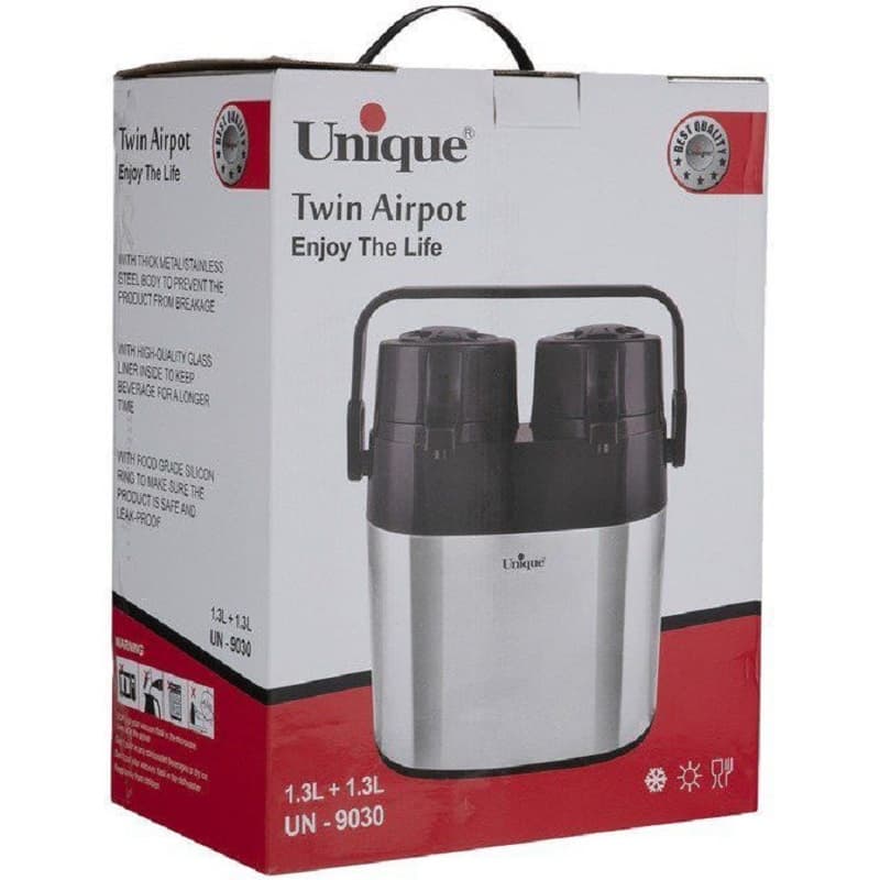 فلاکس دوقلو یونیک 1.3 لیتری مدل 9030 یکی از محصولات کاربردی و باکیفیت برند UNIQUE است که برای نگهداری همزمان نوشیدنی گرم و سرد طراحی شده است. این فلاکس دارای دو محفظه مجزا بوده و به شما امکان میدهد چای، قهوه یا آب خنک را برای ساعتها با دمای مطلوب حفظ کنید.