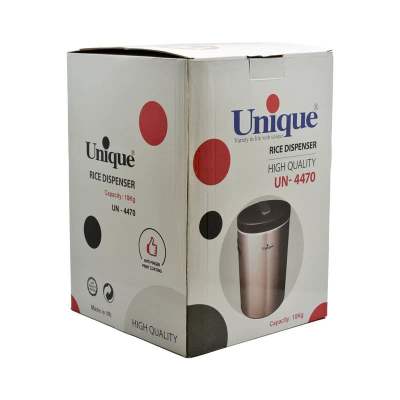 سطل برنج یونیک مدل 4470 یک مخزن کاربردی و مقاوم برای نگهداری بهداشتی برنج و سایر مواد غذایی خشک است. این محصول با طراحی شیک و بدنه با کیفیت، از ورود رطوبت و آلودگی جلوگیری کرده و به حفظ تازگی برنج کمک میکند. انتخابی مناسب برای آشپزخانههای خانگی، جهیزیه و استفاده روزمره.